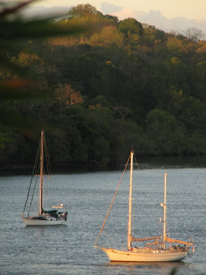 We arrived in Boca Chica on Sunday, Feb. 8th. We thought the strong northerlies would be over, so left our nice secure anchorage in Isla Parida...but that was a big mistake! We saw 35 kts outside the entrance to the estuary leading to Boca Chica. It was extremely boisterous, to say the least!! Boca Chica is a tiny little town with no real dinghy landing and a few houses. We have been "boat bound" since then by the same winds. They were steady 15 to 20 with gusts to 35!! On top of that, there is a strong current in here. When we came in, it was so windy we just dropped the hook outside the other boats and prayed we'd stay hooked. We thought we could move later, if/when the wind calmed down. Well, we're still in the same spot and have been battered broadside as the wind hits us from that direction as we are facing into the river current. There are lots of back eddies and different current directions so boats seem to face every which way. It's all a bit hairy for us!! It seemed to calm down last night, so we tried out the restaurant on the point. It was still pretty windy up there, but a nice change since we haven't been in one for over a month!