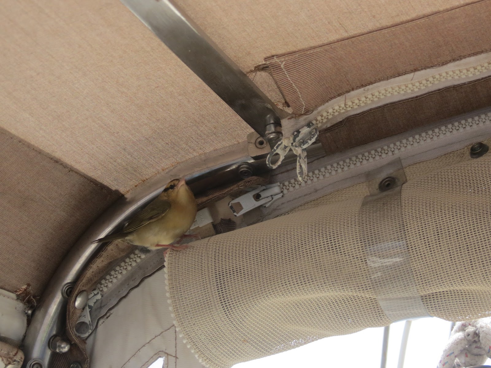 Unfortunately, they weren't content to stay outside, and headed into the cabin. This one is perched above our settee...we didn't let him stay long!